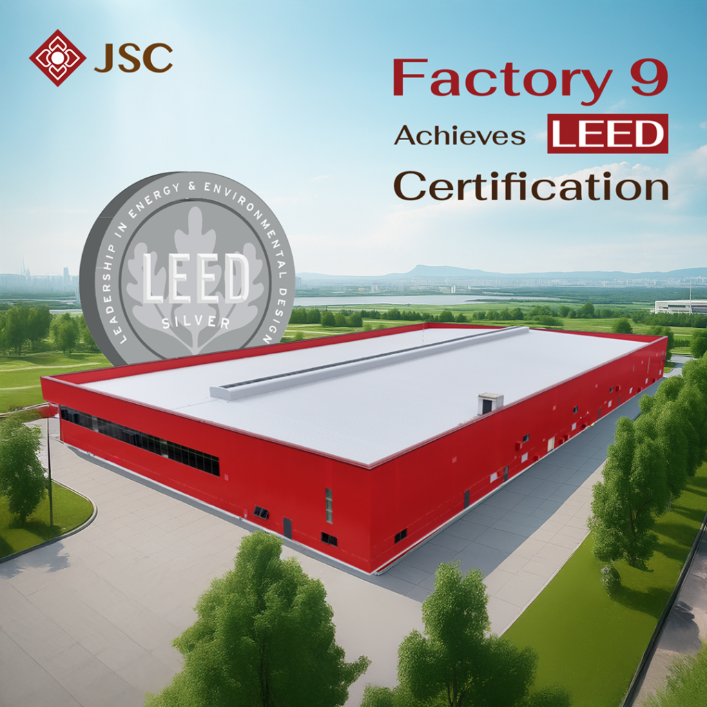 JSC vừa ghi dấu ấn quan trọng trên hành trình phát triển bền vững khi nhà xưởng 9 chính thức được cấp chứng chỉ LEED Silver bởi Hội đồng Công trình Xanh Hoa Kỳ (USGBC). Đây là một trong những chứng nhận quốc tế uy tín hàng đầu về công trình xanh, đánh giá các tiêu chí khắt khe liên quan đến hiệu quả năng lượng, sử dụng tài nguyên bền vững và bảo vệ môi trường. Cột mốc này không chỉ khẳng định vị thế tiên phong của JSC trong lĩnh vực xây dựng và vận hành nhà xưởng hiện đại, mà còn thể hiện cam kết mạnh mẽ trong việc kiến tạo các giải pháp sản xuất thân thiện với môi trường, đáp ứng tiêu chuẩn khắt khe của các đối tác toàn cầu.